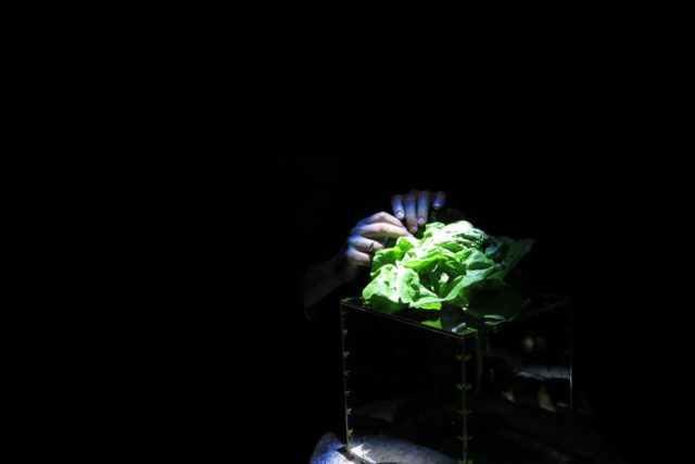 Cyril Lepetit: Green frequencies. Still frame from a video presented in the immersive installation performance, Perla Divus, Prague, 2016.