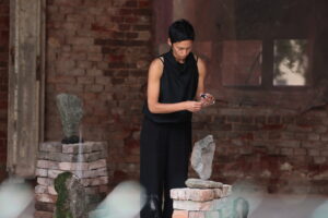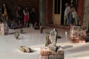 Działanie Jasmin to przeciwstawianie ciężaru i lekkości. Artystka używa kamieni, które są ciężkie i twarde, i nici, które są lekkie i elastyczne. Performance mówi o niezauważanym i niedocenianym oddziaływaniu i ważności tego, co poślednie, drobne, delikatne i ukryte w porównaniu z tym, co oczywiste i dominujące.