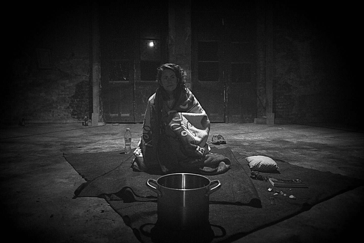 Oparte na tekścieUrsuli K. Le Guin, autora-człowieka, której ciało już zniknęło, improwizowany kolektywny performance “a forest that became all eyes or Abuela. Boka. Xibalba.” staje się miejscem dla słów w ciemności, gdzie wspomnienia o babciach przekształcają się w coś innego niż człowiek. Pieśni i szepty, długie momenty ciszy, które są niezbędne dla materialności takich spotkań, z ciała performerki do innych obecnych ciał, nawet tych niewidocznych. Każdy uczestnik jest proszony o przyniesienie swojego koca, najlepiej takiego, który jest prezentem od babci.