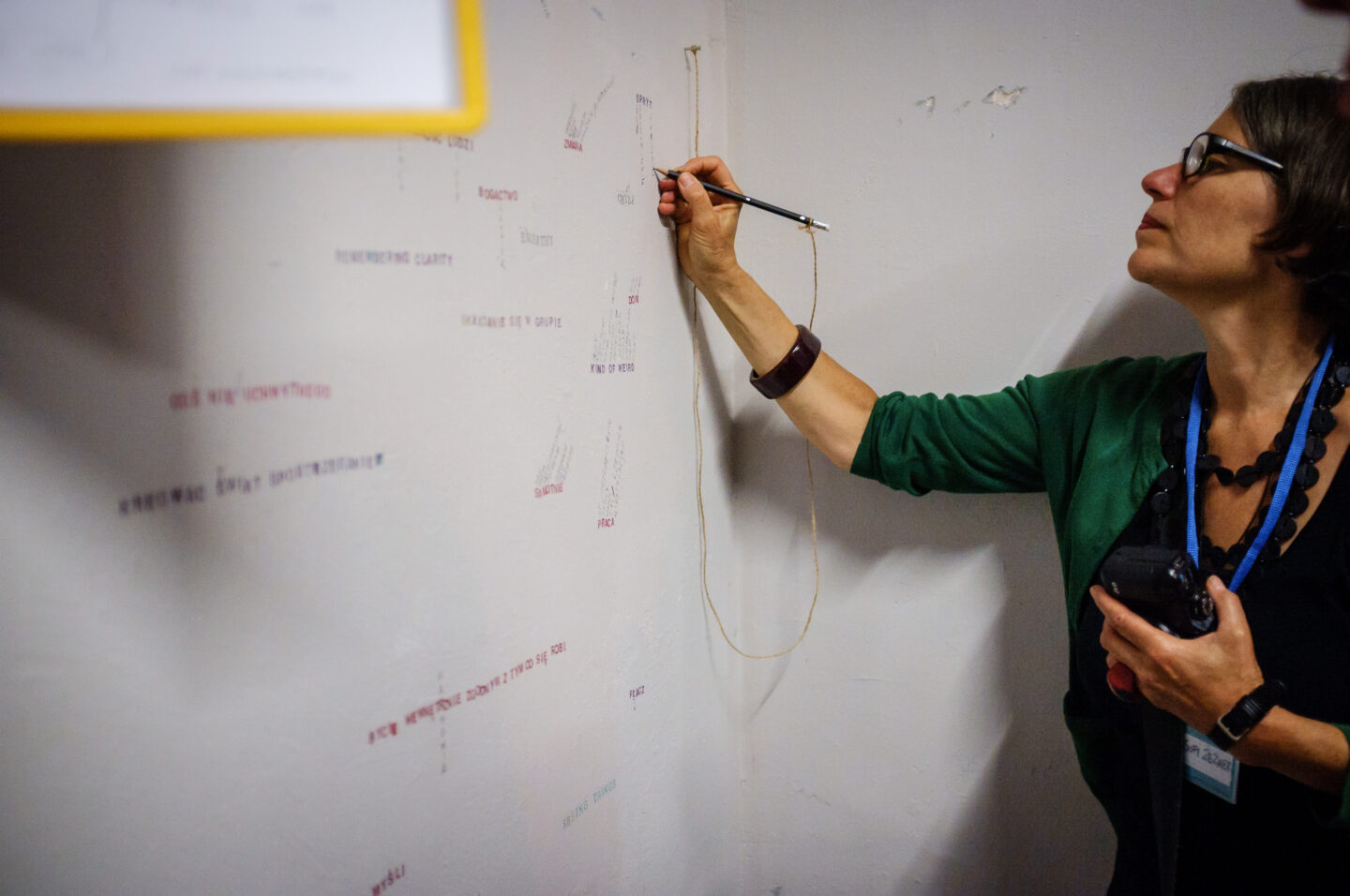 2. I invite the audience and participants of Konteksty festival to expand on the semantic fields of these chosen words. This is done as follows: to each letter an additional word (or many words) are added, which relate to the content of the original word. In this way an interactive ‘Word-Portrait’ is generated of the specific place and time”.