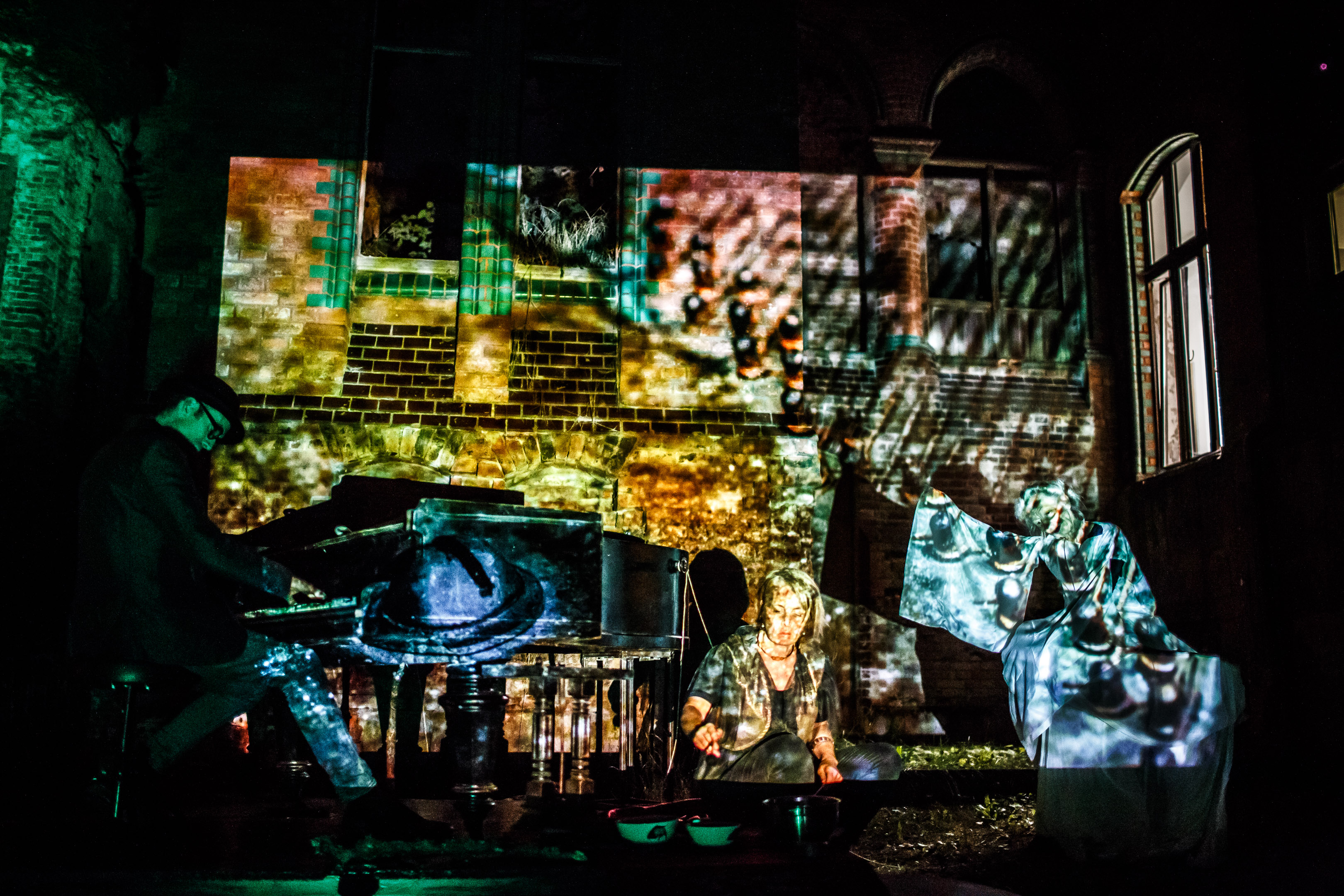 Susanne Weins (Germany) transformed two main still abandoned halls of the Sanatorium into a library of echoing sounds and vocalisms by re-adapting her piece “Melancholic Body.” Through her voice, it was as if the dilapidated walls of the Sanatorium were abandoned creatures still preserving the thoughts of all those who knew but hadn’t realised yet; those who grasped but could not imagine that the postmodern promise, the freedom from fear, now lies in ruins. The dark empty halls of the Sanatorium infused of a melancholic résumé because of Weins’s voice, seemed to confirm the need for holding-up the Self and contrast the today craving selfishness and spurious logic, which are detrimental to human existence.
