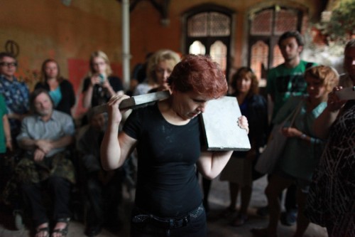 Anna Płotnicka (b. 1956) is an artist and curator, working in the intersection of performance, installation, and video art, whereas the last medium is for her a means of documentation, as well as a constitutive element of her works. In her works, she often explores the notion of place, understood as a place for living or a physical perception of space; she raises up questions of femininity and focusses on feelings and emotions. Her performances often take form of involving public live installations.