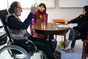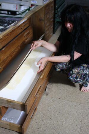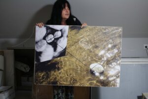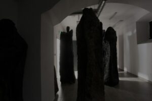 Bożenna Biskupska– born 1952 in Warsaw, a painter, sculptor, installation, video and performance artist. She has exhibited her works in Poland and abroad. Biskupska won the first prize at the International Biennial of Miniature Textiles in 1982 (Hungary) and the Stanisław Wyspiański Award for painting and sculpture in 1984. In the same year she was granted a scholarship from the Ministry of Culture. In 2004, together with Zygmunt Rytka she created Contemporary Art Foundation In Situ, based in Warsaw and Sokołowsko. Biskupska’s oeuvre reflects her path leading from figurative art to abstraction and developing her individual language. She experiments with different techniques, combining painting and sculpture, using concrete, marble flour, the negative film or linseed oil.
