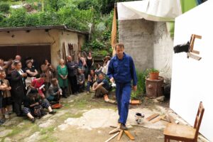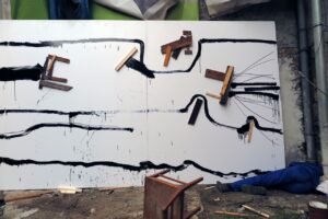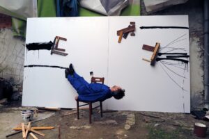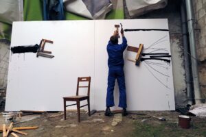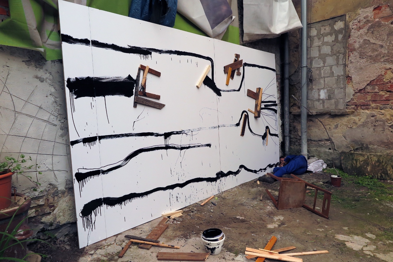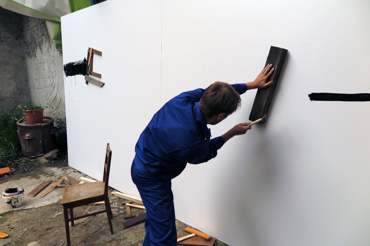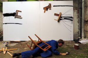 Jan Mioduszewski – born in 1974, studied at Academy of Fine Arts, Lódz (1994-1996) and Academy of Fine Arts, Warsaw (1996-1999). Since 2002, his performances have been signed: Furniture Factory. Mioduszewski paints, creates instalations and performances.