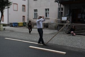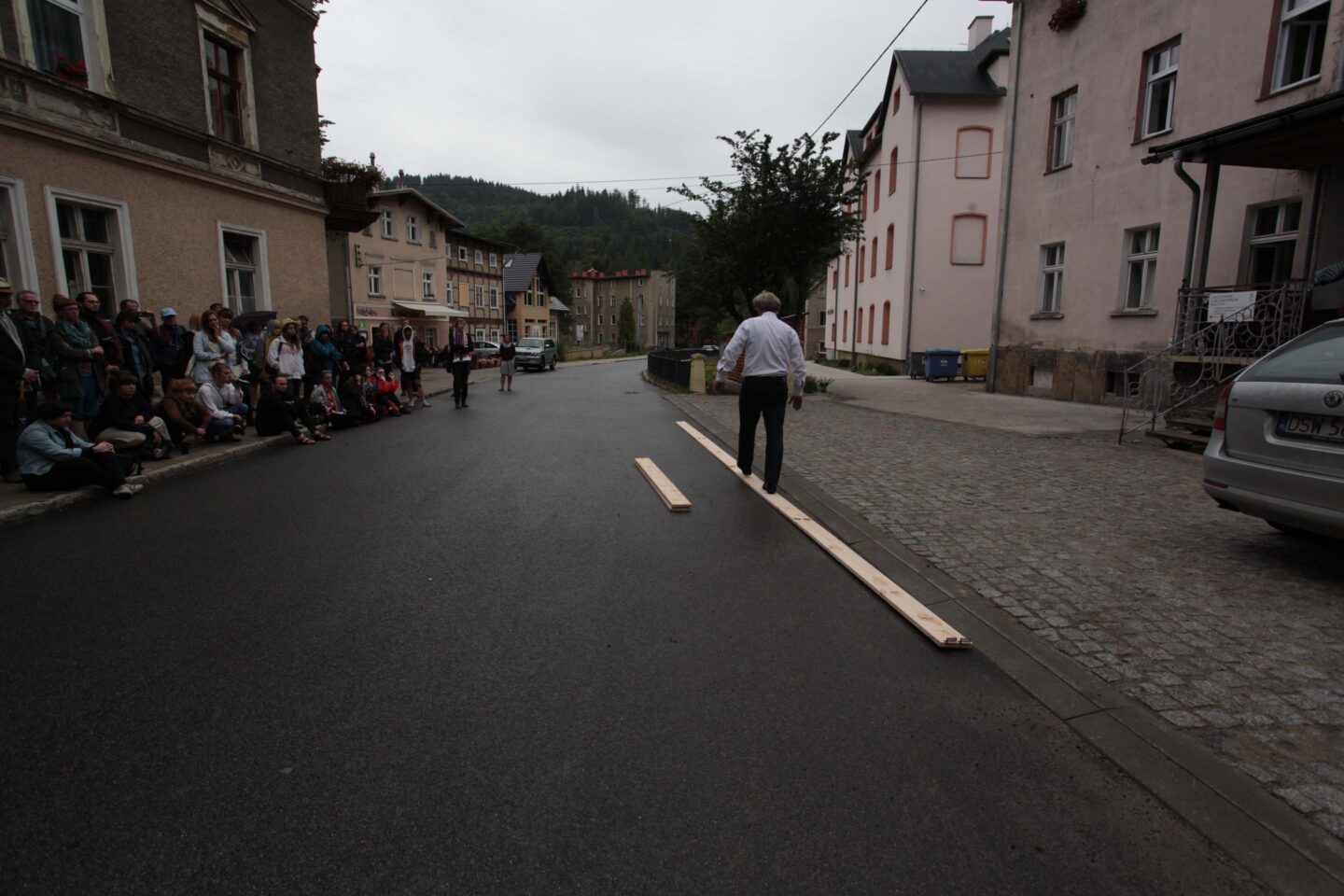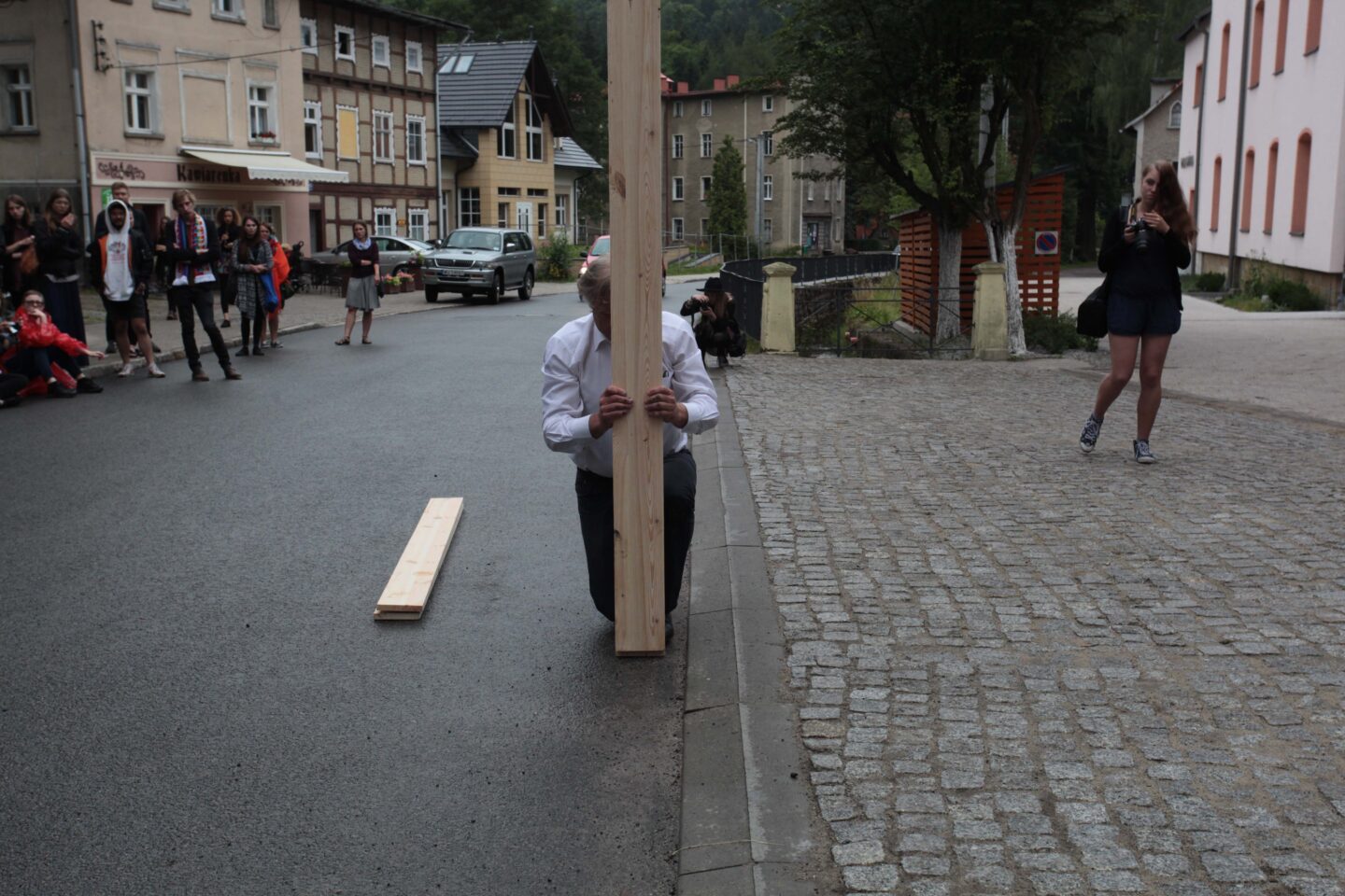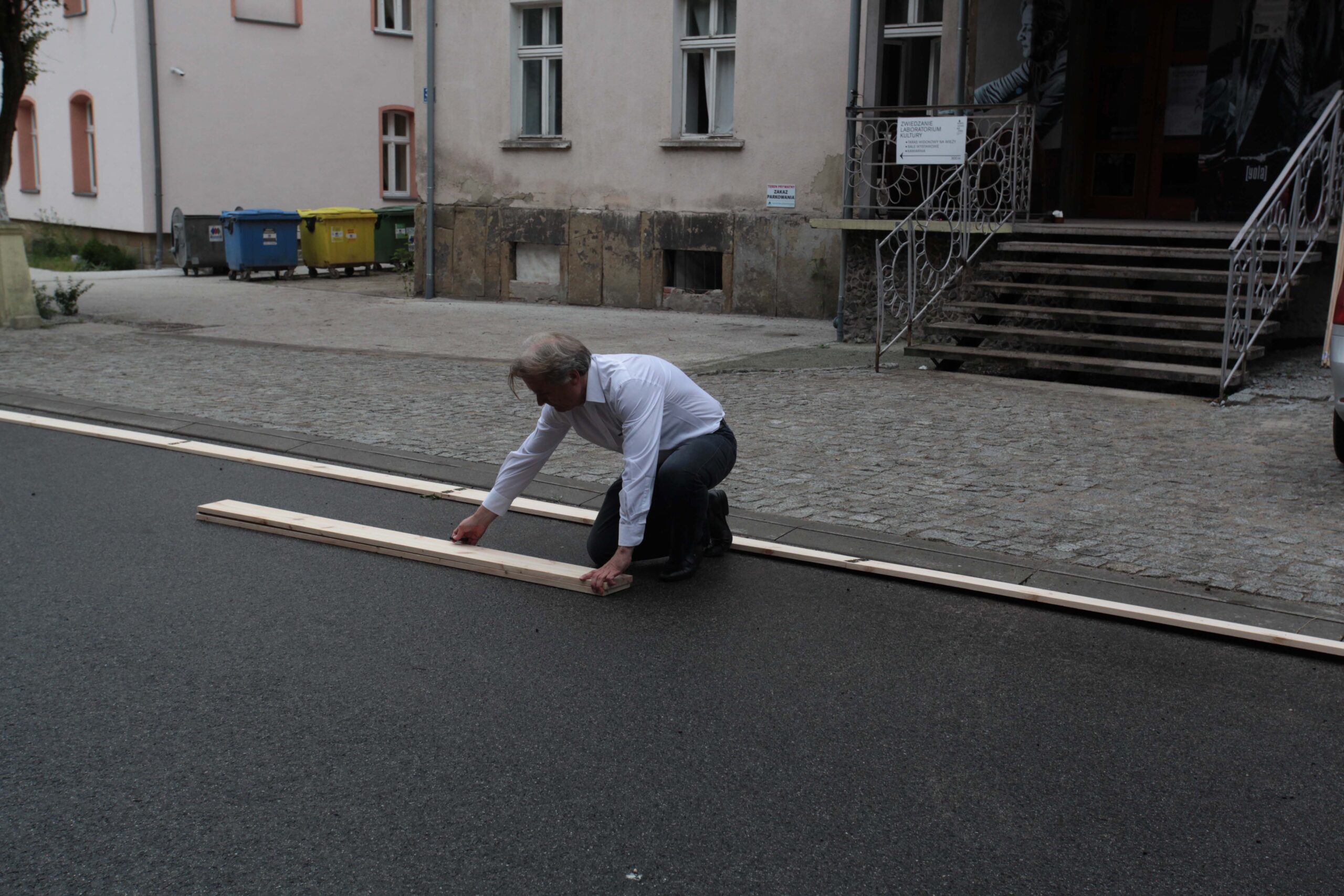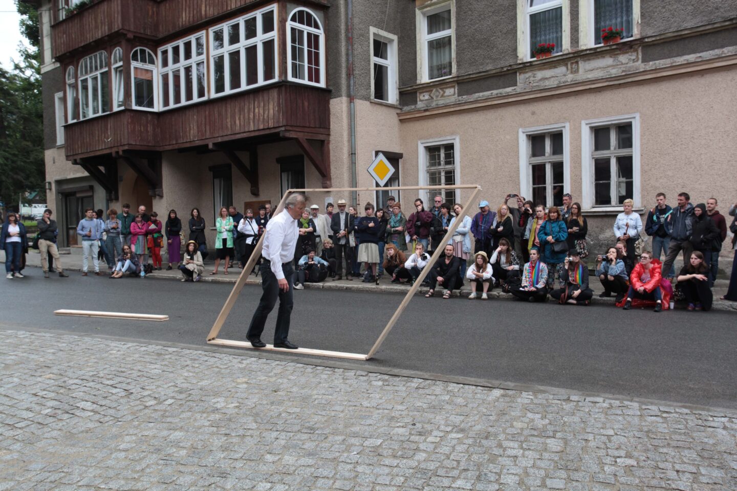A View into the Window 2017 is a performance that refers to the performance of 1997 A View into the Window realized in at Andrzej Mroczek’s Gallery in Lublin. It is a kind of vehicle that moves along the street, up and down. A man is enclosed in a frame, almost biologically connected with his body and taking over the characteristics of human existence – tensions, resistance and aspirations.