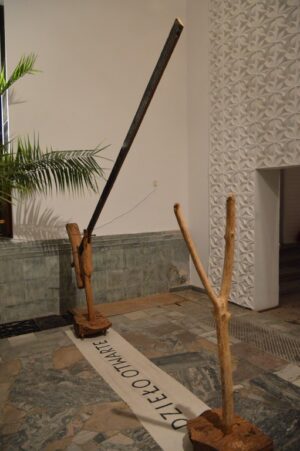 His first solo exhibition was in 1958 in the Kraków House of Artists, where he presented the sculptures: ‘Lullaby’, ‘The Sun’, ‘Mother’, ‘Eve’, ‘anxiety’, ‘Idyll’ made of plaster and reinforced concrete. His experience at this exhibition influenced his decision to halt the work he had been doing up to this point and along with it the traditional methods he learned from the Academy of Fine Arts in Kraków. Just before 1960, he created his first sculptures of wood:’Rzepicha’ and ‘Bart’. However, these were very realistic renderings that led the artist to turn to minimalism. Since then, his sculptures in wood have become increasingly simple and stay as close as possible to the nature of the material used. In 1960 he created work out of natural materials in the series hallucinations and ine 1967 in the series The Oracle. He used field stones, hemp rope, scraps of canvas bag, leather straps (the characteristic of materials for his work).