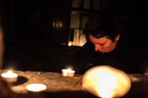 Katarzyna Podpora – born in Kołobrzeg, lives and works in Gdańsk; stays strongly attached to the sea – its soundscape, its movement, how it affects solid matter; graduated from the Academy of Fine Arts in Gdańsk [Faculty of Sculpture and Intermedia Art, obtained a PhD degree in 2014 – in Prof. Katarzyna Józefowicz’s studio]; she is not employed at the academy, but works as a translator and a teacher; she is fascinated with the interreflection: words/meanings/reality which forms her creative thought and practice; her artistic interests focus on space reflected in record [objects, installation, sound, video] – she works on such issues as materiality of written word, the process of recording/reading, substances that convey meaning; she co-organizes workshop projects at the Borderland Centre in Krasnogruda.