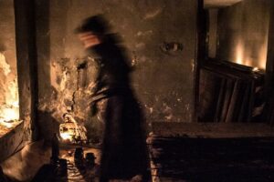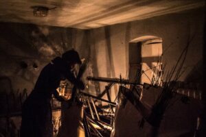 The double transposition means conveying a recorded sound of the artist’s work with rush in her ‘familiar space’, as well as the person [herself] doing the actual work – attempting to find her matter [rush] in the mountains and to cover the new space with its meaning.
