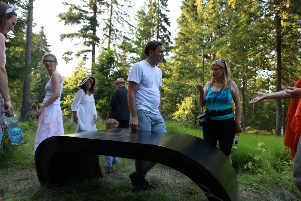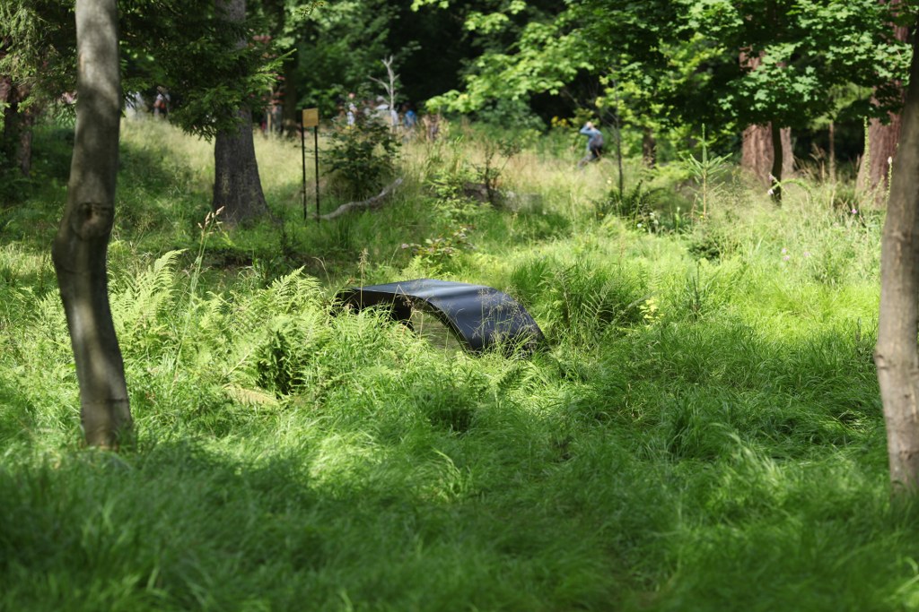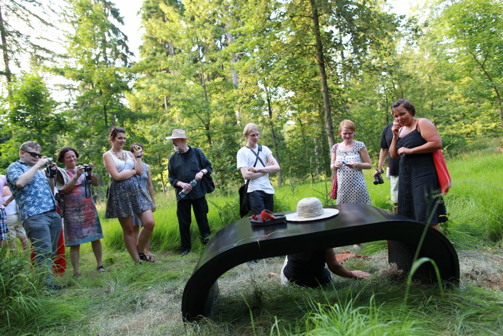 Bent in the form of a horseshoe table connected two places which are 253 km away from themselves. Most of it is hidden under the ground. Both of its ends, situated in Jezyce, Poznan and crooked center in Sokolowsko are sticking out over the surface. This shape of the work is the key to understand the meaning of it.