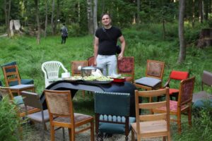 Maciej Kurak’s work is kind of parabola either in terms of its form (geometrical figure – half-oval bent curve) or the content (the parable of ethical teaching, based on exaggerative characteristics of the object having allegorical meaning). On the one hand „Limited Liability Company” is an invitation to participate activly in shaping exchanges between cultural centers and reaping the positive examples in this extent, on the other – it is a warning against responsibility related with this action. „Table” seen as „company” is the highlighting importance of „invisible cultural assets” that can be defined as the communication capabilities of people taking part in it. Ability to establish dialogue is revealed in this context as a very valuable talent.