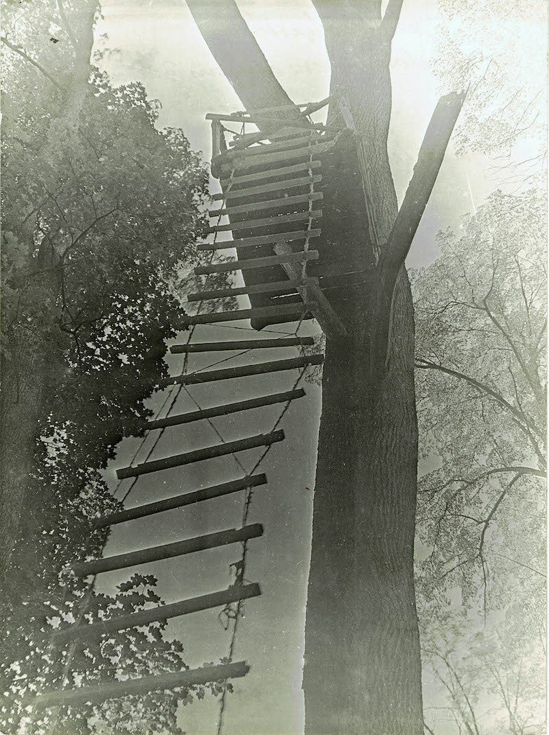 1. Place a pulpit on the tree, drain a rope ladder with rungs painted pink (the higher the lighter shade of pink)