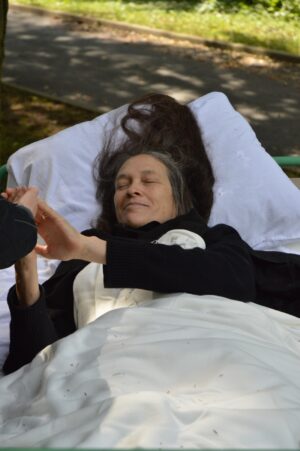 She has been creating live events since 1975, ranging from solo performances to large-scale interactive works incorporating installation and performance. She has presented her work at festivals, conferences, alternative spaces, galleries, universities and museums throughout Europe, Asia, the Middle East, and North and South America. She is on the faculty of the School of the Museum of Fine Arts, Boston, where she teaches performance art. She is a member of Mobius, Inc., which she founded in 1977. Mobius is an interdisciplinary collaborative of artists who operate a gallery in Cambridge, MA.