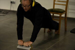 Performance touches the issue of silence and sound, obstacles and efforts, quietness and loudness, lightness and difficulty …