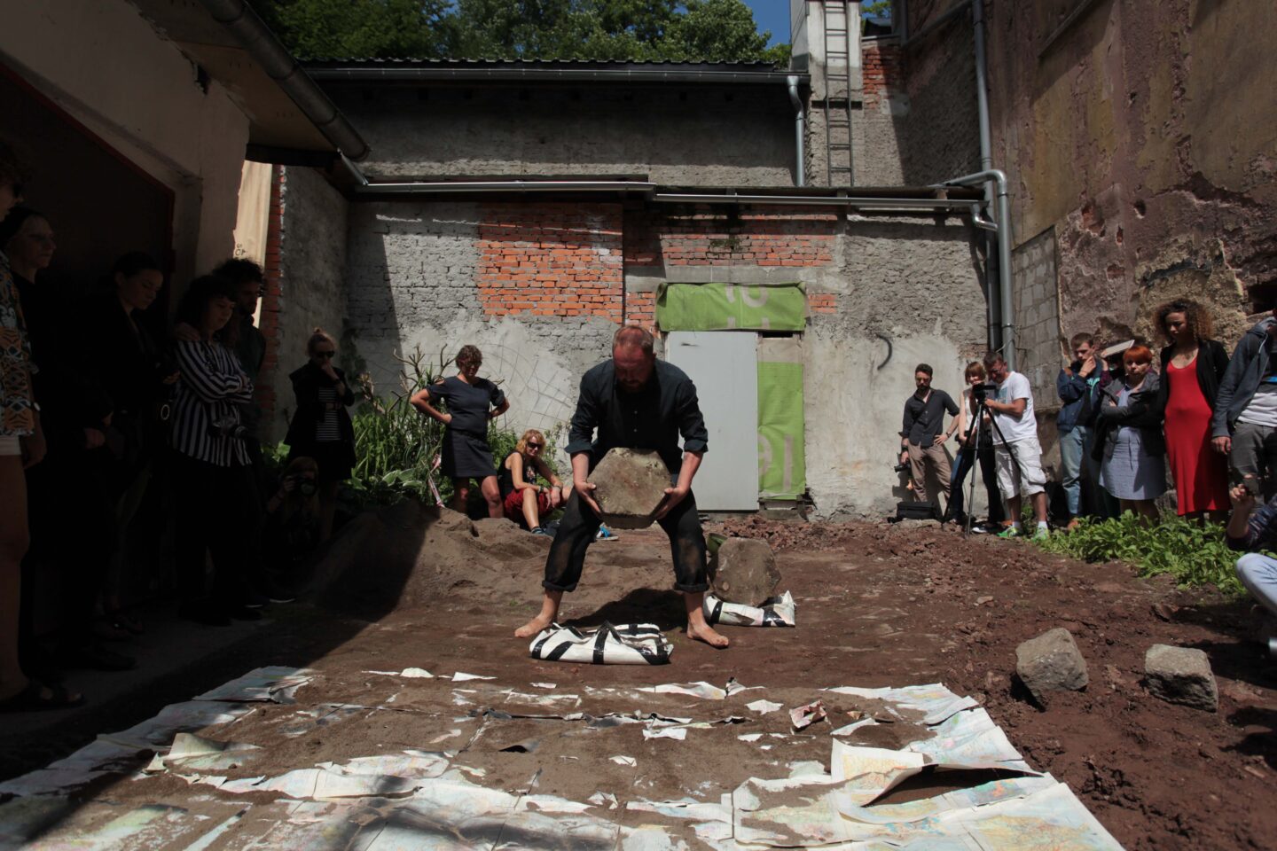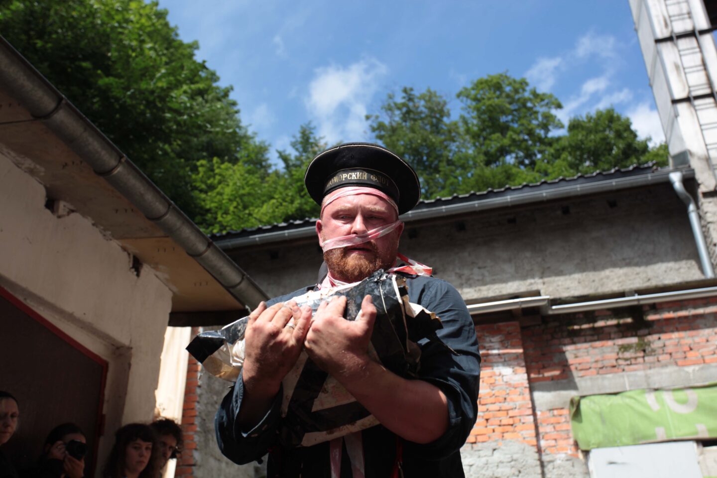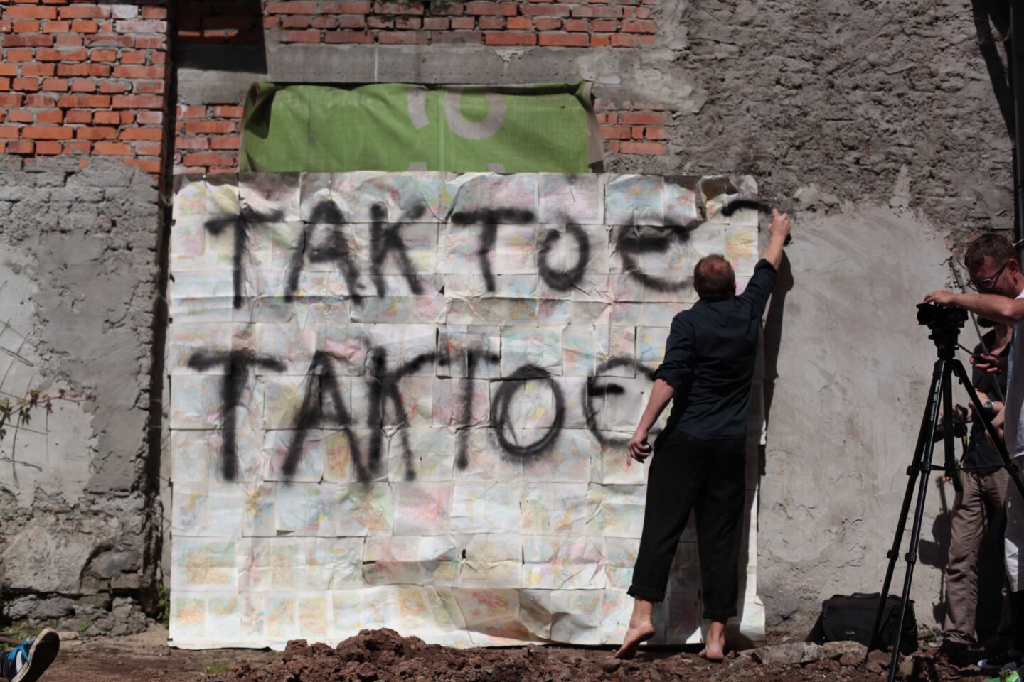 Performance talks about taking over territories, occupation, annexation… It is the artist’s subconscious reaction to these issues. Information war. Where is the turth? Somewhere in between?
