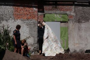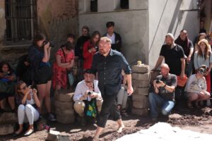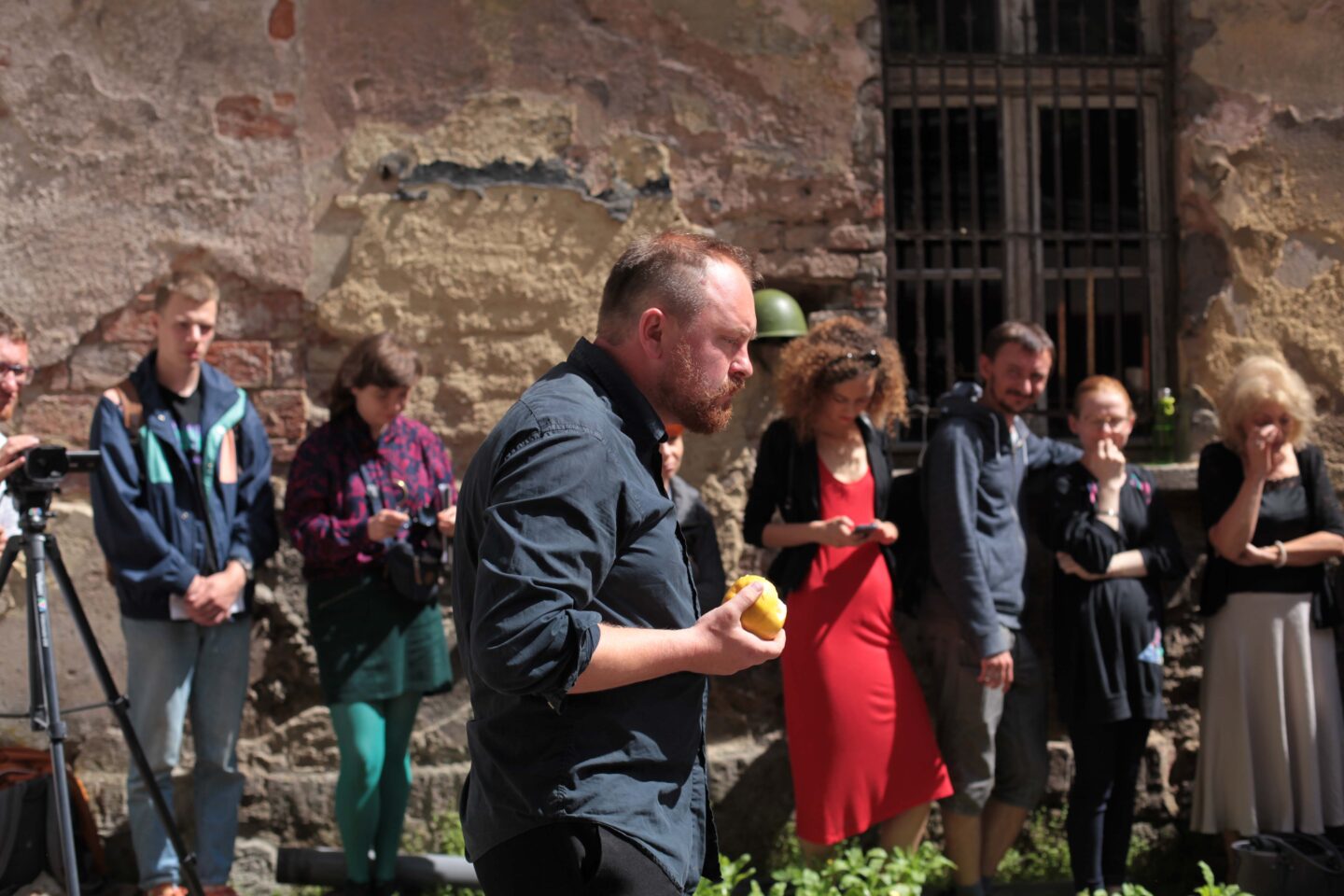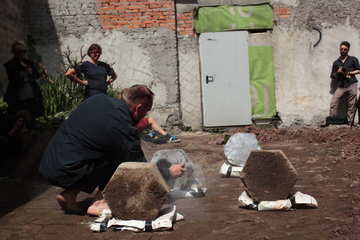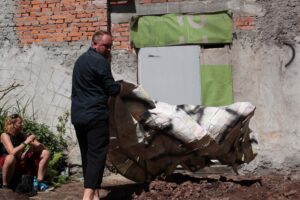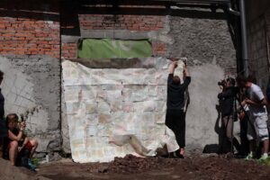 Performance talks about taking over territories, occupation, annexation… It is the artist’s subconscious reaction to these issues. Information war. Where is the turth? Somewhere in between?