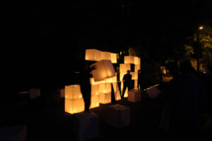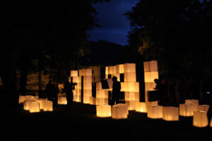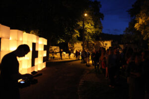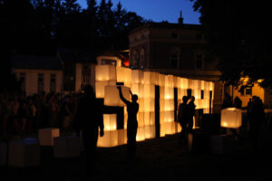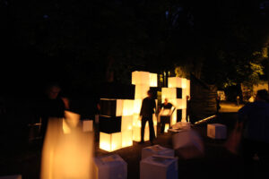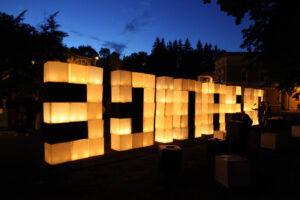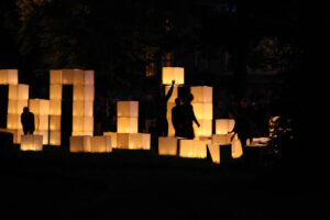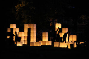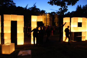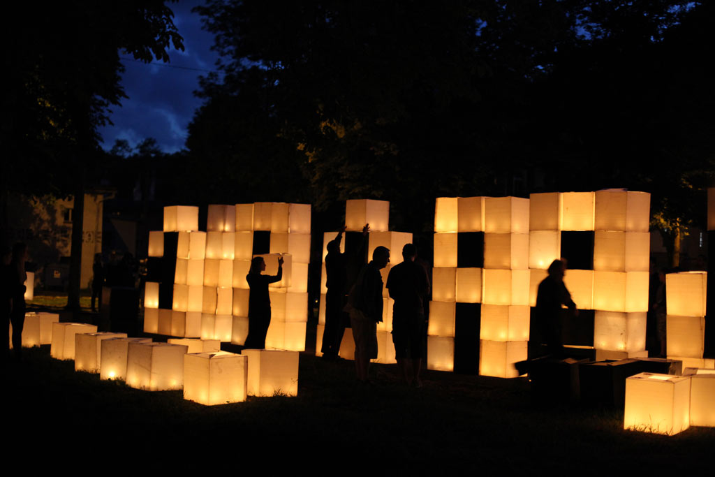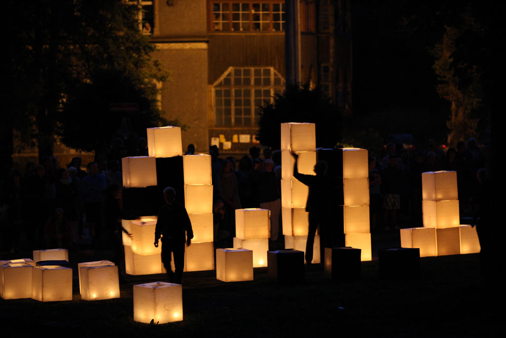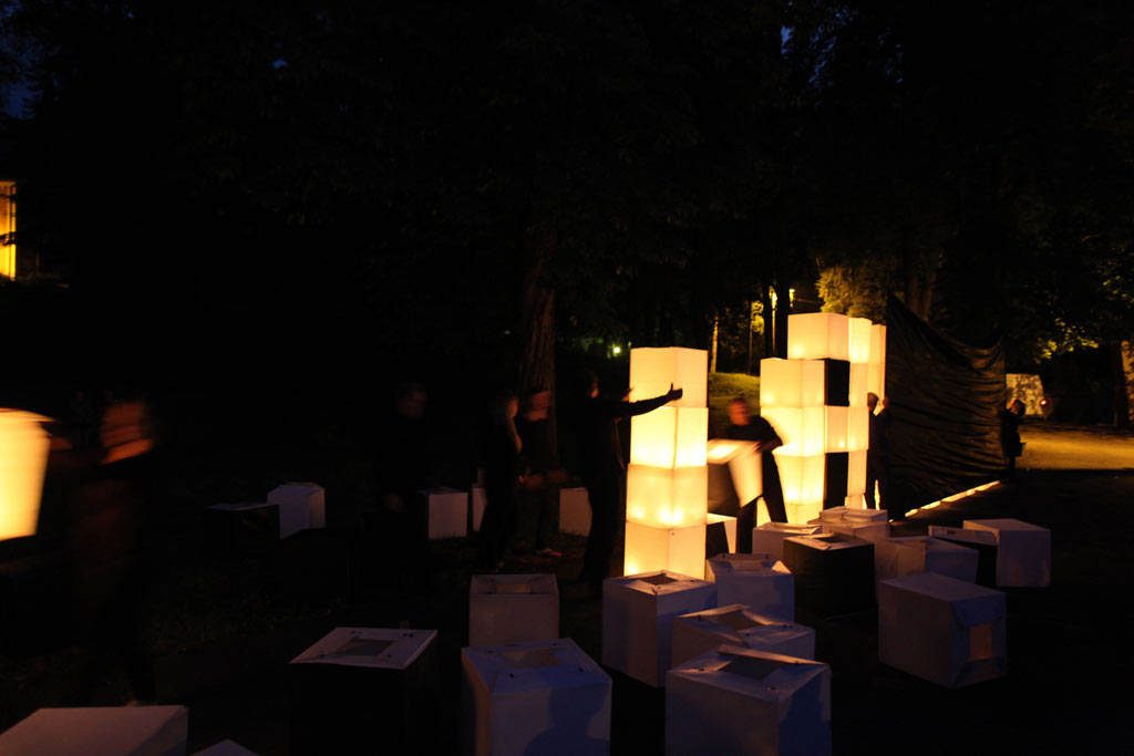 The action on the idea, proposed by K. Żwirblis and referring to the earlier Burning Pole of Holm, of multiplying the motif of the burning masts. In it’s fully developed version, the action was performed in public sqares in a rectangular 10 x 12 m field.