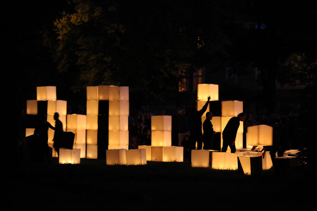 Since the very beginning, it has been known as ‘theatre of behaviour’ and visual narration. The group’s practice combines the disciplines of theatre, visual arts, performance and film, focusing on the shared qualities of movement, space and social message. This is connected with a sense that artistic radicalism and social meaning do not have to be mutually exclusive. Akademia Ruchu’s public-space work, pursued continuously since 1974 (about six hundred performances, events and street actions), is the first example in Poland of such a systematic creative practice –outside the official institutional framework– in ‘non-artistic’ space: on the streets, at private homes, in industrial spaces. On the other hand, transferring elements of the everyday reality in unchanged form into the ‘holy’ space of art (onto the stage, into the gallery) has served to enrich its anthropological vision without in any way impoverishing the aesthetic one. Akademia Ruchu has presented its work in almost all countries of Europe as well as in both Americas and Japan as part of tours and major theatre festivals, e.g. at the Institute of Contemporary Art (ICA) in London, documenta 8 in Kassel, NRL Live Art in Glasgow, Museum PS1/Cloctower Gallery in New York, Ludwig Forum in Aachen, Los Angeles Contemporary Art Exhibition (LACE), Museum of Modern Art in Yokohama or the Walker Art Center in Minneapolis.