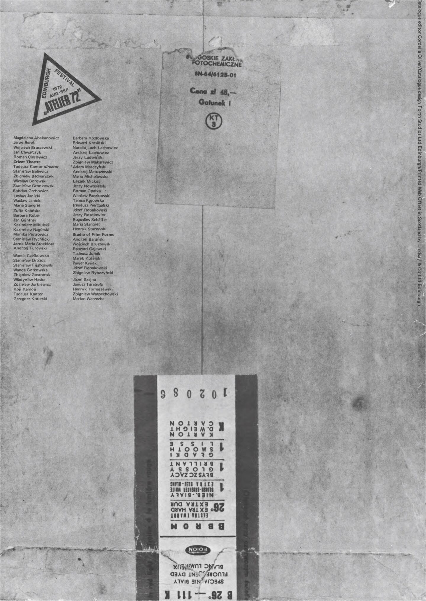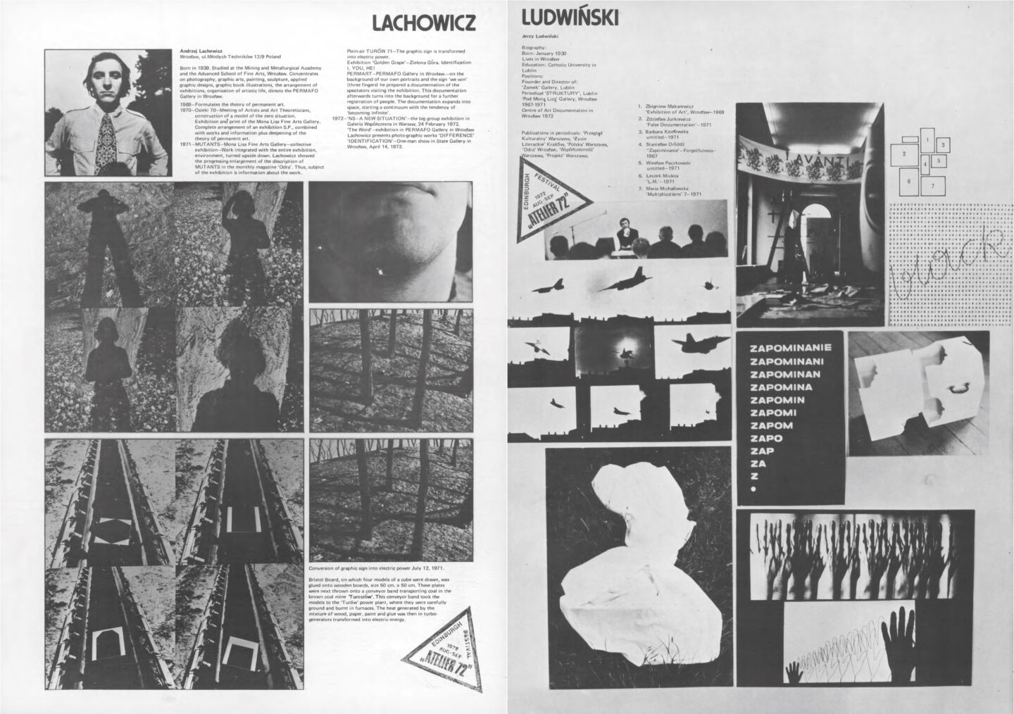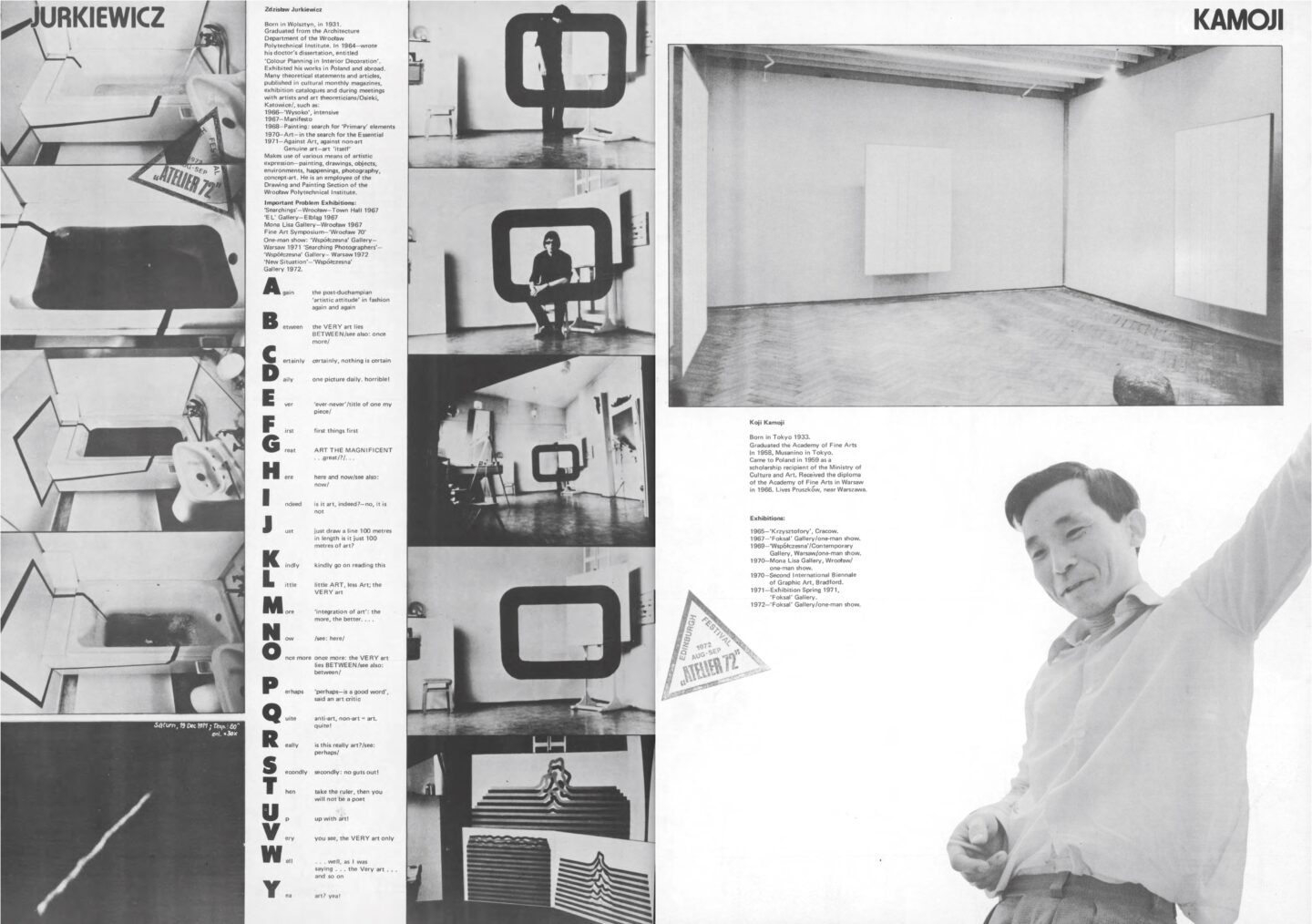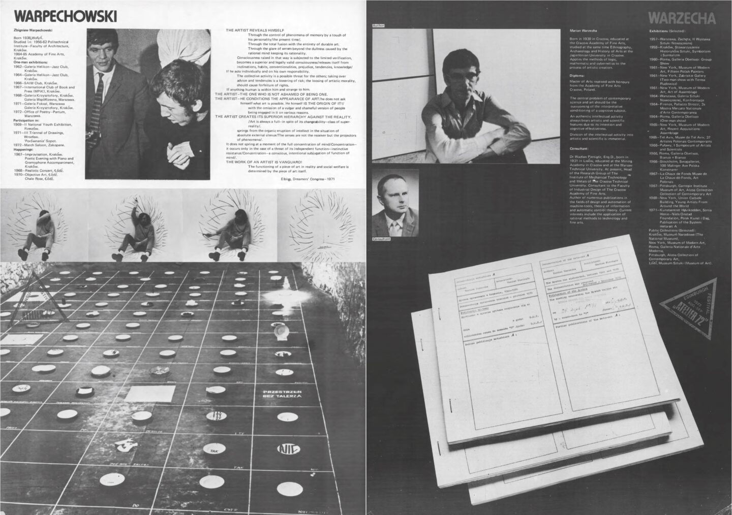 Zbigniew Warpechowski / Koji Kamoji / Natalia LL / Roman Cieślewicz / Tadeusz Kantor / Wanda Czełkowska / Wanda Gołkowska / Jerzy Bereś / Stanisław Dróżdż / Edward Krasiński / Zbigniew Makarewicz / Barbara Kozłowska / Maria Stangret / Bogusław Schaffer / Henryk Tomaszewski / Roman Opałka / Andrzej Lachowicz / Jerzy Rosołowicz / Henryk Stażewski / Zdzisław Jurkiewicz / Józef Robakowski / Paweł Kwiek / Warsztat Formy Filmowej